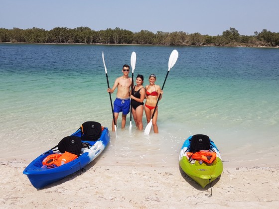 Inklusive: Kajak Set (Rettungsweste, gepolsterter Sitz, Paddel), Fruchtsalat, Wasserflaschen, Handtuch, Waschgelegenheit, Taschenlampe.
